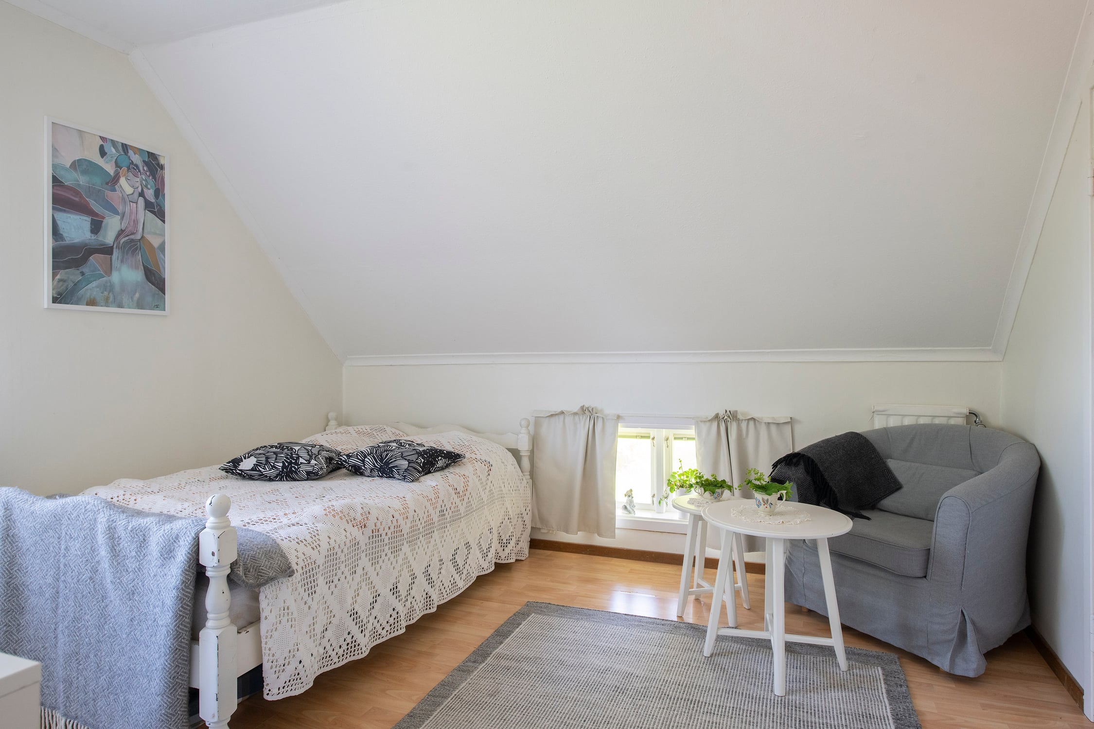 ÖVRE PLAN: Övre hall - WC/lilltoa, två sovrum - det större nyttjas som både sovrum och kontor och har utgång till balkong