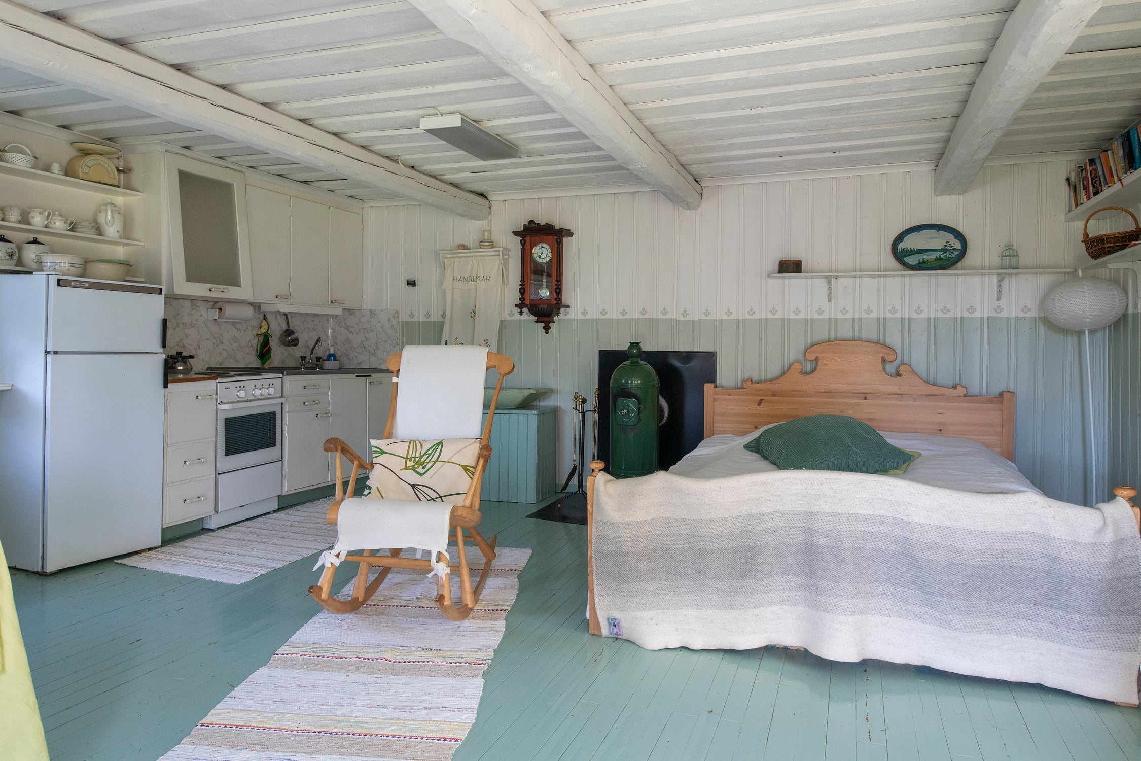ENTRÉPLAN: Varmbonad och möblerbar veranda som idag rymmer matgrupp och sittgrupp, utbyggd av nuvarande ägare, fina dubbelytterdörrar - rymligt kök utrustat med både el och vedspis, köksfäkt, kombinerad kyl/frys och diskmaskin - vardagsrum.ÖVRE PLAN: Två sovrum varav ett med utgång till balkong, klädkammare och hall, toalett.